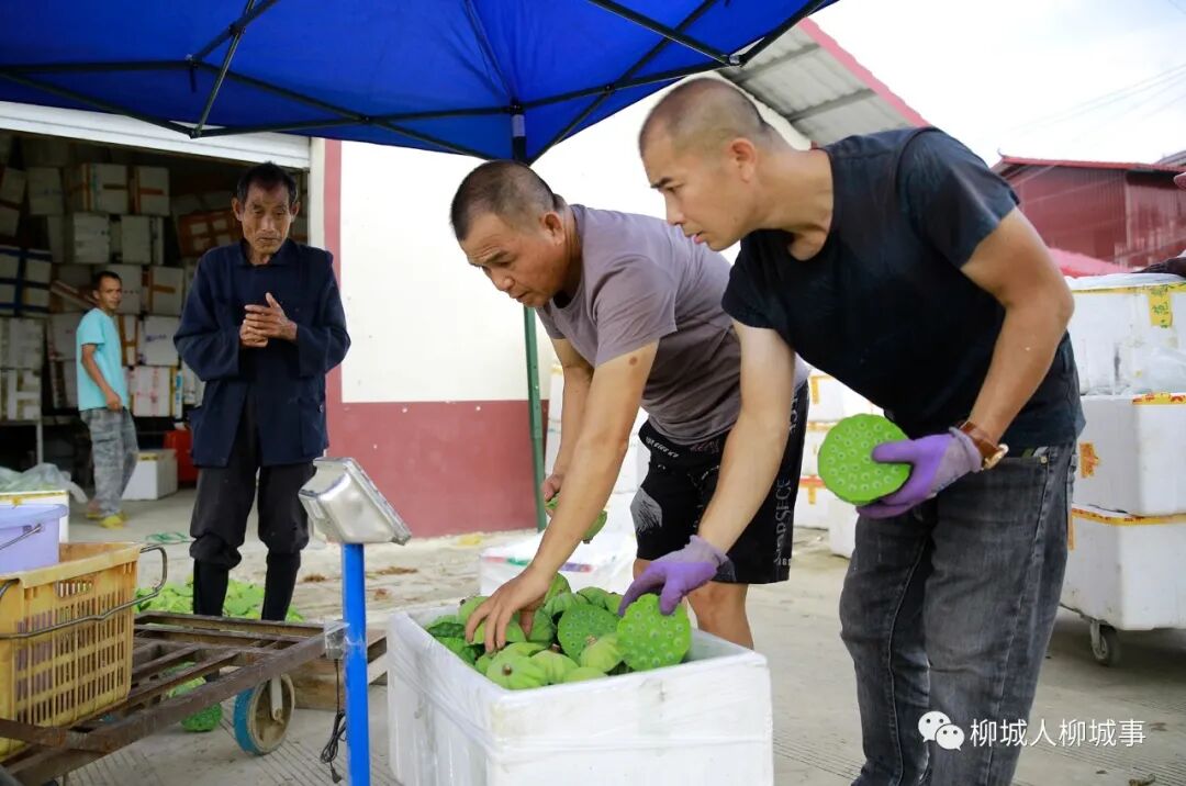 因為蓮子是陸續(xù)成熟的,所以數(shù)量不固定,采到多少賣多少。每隔幾天,收購蓮蓬的客商就到屯里大批量收購,加冰運送到廣東江南批發(fā)市場銷售。
