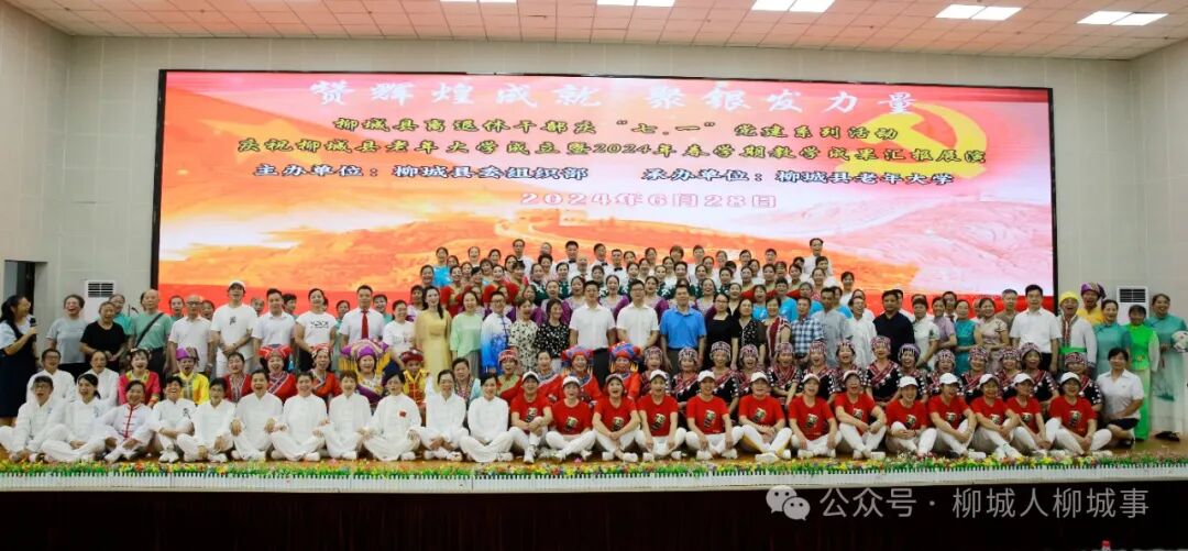 為迎接“七·一”建黨節(jié)的來臨,展示老年學(xué)員的學(xué)習(xí)成果。6月28日,以“贊輝煌成就 聚銀發(fā)力量”為主題的柳城縣離退休干部慶“七·一”黨建系列活動——慶祝柳城縣老年大學(xué)成立暨2024年春學(xué)期教學(xué)成果匯報展演在縣實驗中學(xué)大禮堂舉辦。
