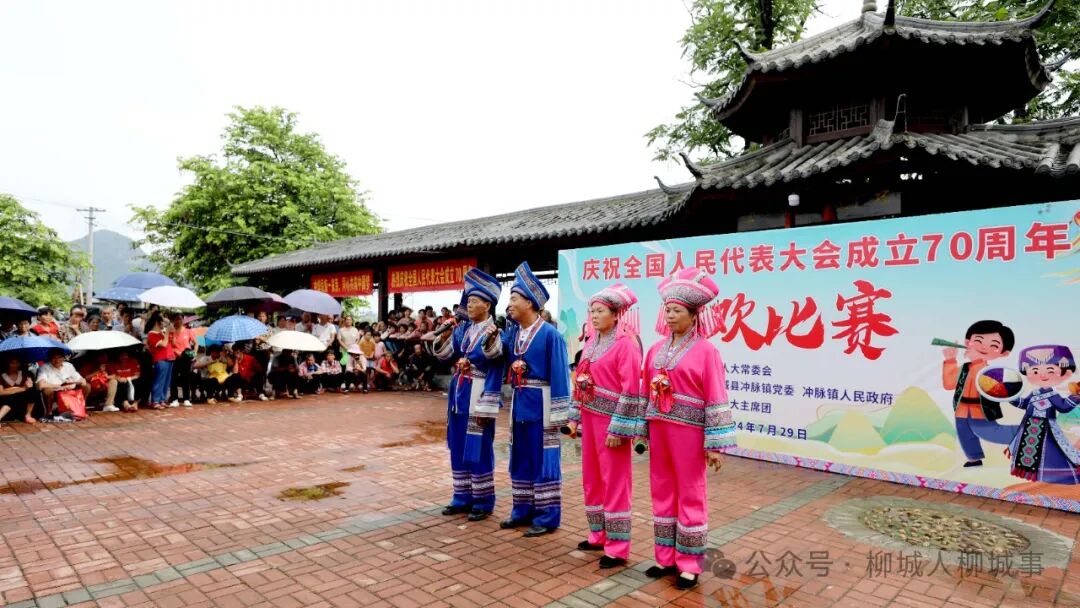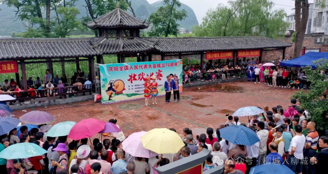 在柳城縣沖脈鎮(zhèn)壯歡歌圩上,由柳城縣人大常委會(huì)主辦的慶祝全國人民代表大會(huì)70周年壯歡比賽正火熱進(jìn)行中。